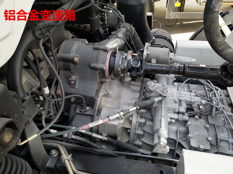 前四后八的搅拌车为了减轻车身重量根据了一些方面的改进,发动机,变速箱,油箱,气罐,前后桥,能采用铝合金的都采用了铝合金材质。